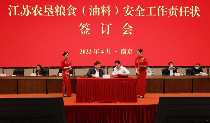 為進一步壓實糧食(油料)安全工作責(zé)任,全面完成全年糧食(油料)生產(chǎn)目標(biāo)任務(wù),4月28日下午,集團公司召開糧食(油料)安全責(zé)任狀簽訂會。集團公司黨委書記、董事長魏紅軍出席會議,黨委副書記、總經(jīng)理胡兆輝出席會議并講話,黨委副書記姚準(zhǔn)明主持會議并宣讀江蘇農(nóng)墾糧食(油料)安全工作領(lǐng)導(dǎo)小組組成人員名單,黨委委員、副總經(jīng)理姜建友,黨委委員、總會計師劉克英,黨委委員、紀(jì)委書記李旭東,黨委委員、副總經(jīng)理王立新,黨委委員、工會主席楊義林出席會議。
