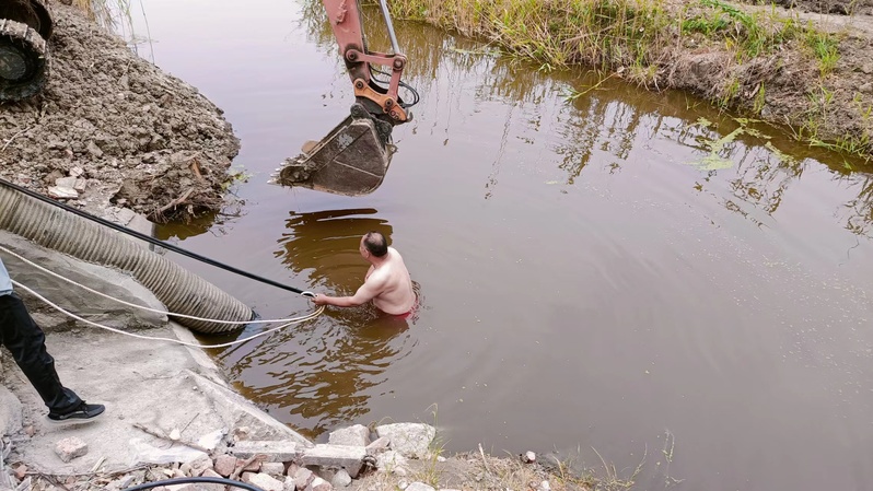 “我沒事,下河修機(jī)器對(duì)我來說是家常便飯。雖然年紀(jì)大了點(diǎn),還是能堅(jiān)持的。”6月10日上午,剛從王衛(wèi)生產(chǎn)區(qū)的東劉電站北河里爬上岸的王洪波,一邊穿衣服一邊笑著說道。