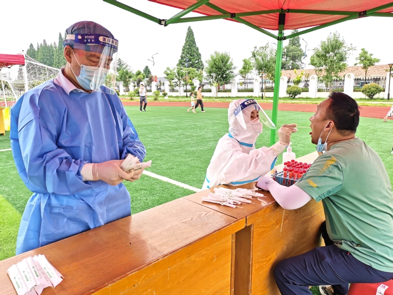 把廣場當戰(zhàn)場,在團結(jié)協(xié)作中恪盡職守。早晨五點半,居民們陸續(xù)趕來參加核酸檢測。只見徐加云一身藍色防護服,頭戴隔離面罩,手著橡膠手套,行色匆匆地忙碌在服務一線。指導掃碼、測量體溫、維持兩米線……看到需要引導的居民,他主動上前做起引導員;遇到腿腳不靈便的老人,他連忙攙扶做起志愿者;碰到哪個點位需要人手,他自愿加入做起服務員。溫度迅速攀升,衣服早已干了又濕,他卻毫不在意。拿起消毒噴壺,他仔細地為采樣臺、醫(yī)用垃圾箱、人員等候區(qū)等處消毒。為縮短居民等待時間,加快采樣速度,他提前為醫(yī)護人員準備好核酸檢測咽拭子棉簽?!拔沂怯游瘯ぷ魅藛T,這些都是我應該做的,更何況我還是一名共產(chǎn)黨員,全心全意為人民服務是我的職責。”當被問到辛不辛苦時,他笑著回答道。歷時三小時十分鐘,迎湖廣場檢測點完成樣本采集1080份。核酸檢測高效率的背后,是徐加云的點滴付出,也是一個個共產(chǎn)黨員團結(jié)協(xié)作的結(jié)果。