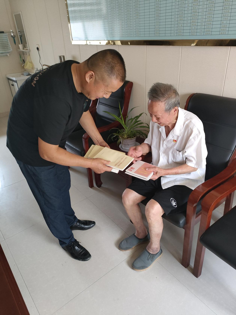 一番噓寒問暖,賴順祥說明了來意:“自己這幾年一直在外地兒子家生活,這次回農(nóng)場有兩件事要辦,一是回農(nóng)場收拾收拾自家的老房子,順便看看農(nóng)場近幾年的變化;二是自己在外多年,組織生活參加的少,懇請居委會能否幫我找些黨員學(xué)習(xí)資料,等回到兒子家的時候?qū)W習(xí)學(xué)習(xí)?!蔽衣牶?,先拿起一枚黨徽別再賴順祥胸前,然后吩咐辦事員陳旺將黨員活動中心備用的一套黨員學(xué)習(xí)資料交到賴順祥手中。看著賴順祥手捧資料那開心的神情,我和陳旺兩人也為之動容。
