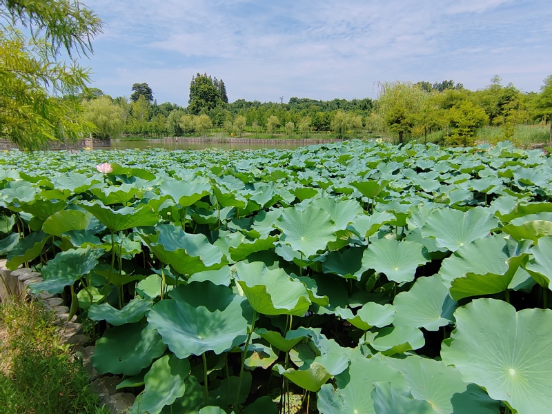 隨著氣溫持續(xù)升高,公園內(nèi)的荷花競相開放,荷葉碧翠欲滴,展現(xiàn)了一副接天蓮葉無窮碧,映日荷花別樣紅的魅力畫卷,讓人感受到一絲絲涼意。周邊居民陳先生說:“有了荷花,這里的夏天更加漂亮了”。湖邊是垂柳依依,隨風(fēng)浮動(dòng)。荷葉一個(gè)接著一個(gè)鋪了滿塘,有的盛著晶瑩剔透的水珠,不禁想起小時(shí)候不懂事,會(huì)把荷葉折下來,拿在手中轉(zhuǎn)圈圈。