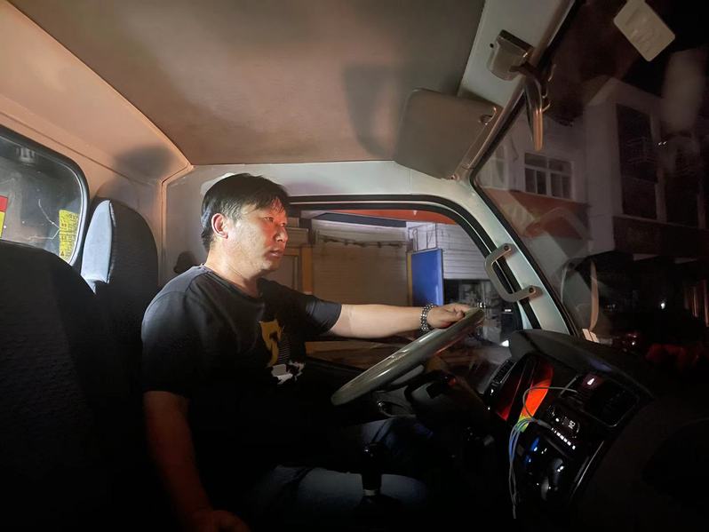 一個點一個點跑,一桶一桶裝,一車一車卸。戴玉剛對每個清運點的位置熟悉得不能再熟悉,一天作業(yè)下來能跑40多公里。當車里垃圾處理完畢,他們又開始洗車刷車……等到都弄干凈了才回家吃點東西,再睡上一覺。