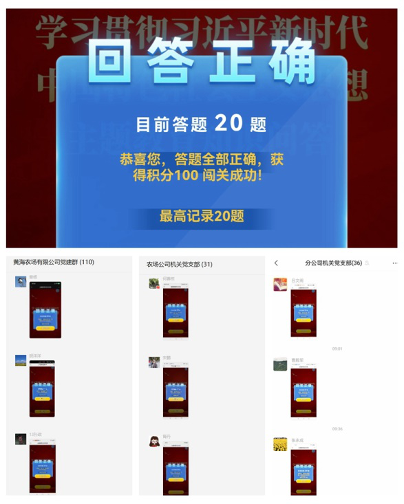為深入學(xué)習(xí)貫徹習(xí)近平新時(shí)代中國(guó)特色社會(huì)主義思想主題教育,激發(fā)和調(diào)動(dòng)廣大黨員群眾的學(xué)習(xí)熱情和主動(dòng)性,促進(jìn)真學(xué)真懂、篤信篤行,黃海通過(guò)開設(shè)微信小程序“黃海學(xué)習(xí)”欄目,開展“學(xué)思想 來(lái)答題”活動(dòng),以線上答題形式進(jìn)行理論學(xué)習(xí)。一期參與300多人,大家紛紛曬出自己的成績(jī)單!