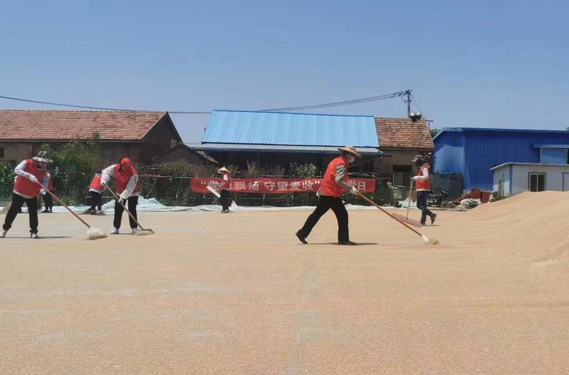 面對6月11日即將來臨的降雨天氣,東辛緊急吹響雨前顆粒歸倉“集結(jié)號”。各黨支部充分發(fā)揮戰(zhàn)斗堡壘作用,與掛鉤生產(chǎn)區(qū)聯(lián)合開展“黨旗飄揚 守望麥?zhǔn)铡敝黝}黨日活動,把黨支部搬到田間地頭,讓黨旗在田間飄揚。黨員佩戴黨徽,亮出身份做表率,走入晾曬場,用實際行動解決搶時收割、烘干晾曬等實際困難,“三夏”火熱實踐成為了開展主題教育的生動“課堂”和實踐“基地”。