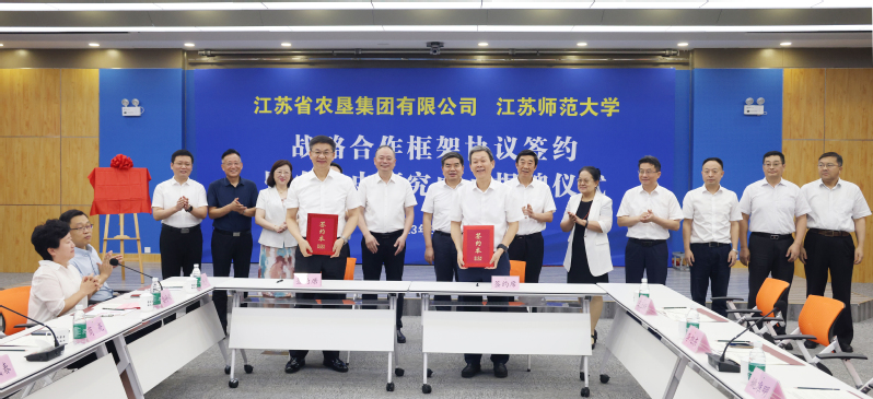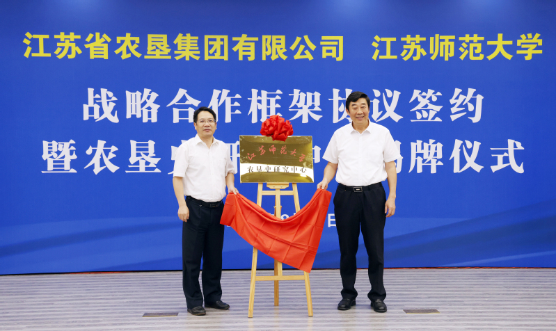 8月10日上午,集團(tuán)公司與江蘇師范大學(xué)戰(zhàn)略合作框架協(xié)議簽約暨農(nóng)墾史研究中心揭牌儀式在徐州舉行。集團(tuán)公司黨委書(shū)記、董事長(zhǎng)魏紅軍,江蘇師范大學(xué)黨委書(shū)記方忠出席并致辭。集團(tuán)公司黨委副書(shū)記、總經(jīng)理胡兆輝與江蘇師范大學(xué)黨委副書(shū)記、校長(zhǎng)周汝光共同為江蘇師范大學(xué)農(nóng)墾史研究中心揭牌。集團(tuán)公司黨委副書(shū)記姚準(zhǔn)明與江蘇師范大學(xué)黨委常委、副校長(zhǎng)蔡國(guó)春共同簽署《戰(zhàn)略合作框架協(xié)議》。江蘇師范大學(xué)農(nóng)墾史研究中心主任岑紅發(fā)言。集團(tuán)公司黨委委員、總會(huì)計(jì)師劉克英,黨委委員、紀(jì)委書(shū)記李旭東,副總經(jīng)理劉耀武,黨委委員、副總經(jīng)理王立新,黨委委員、工會(huì)主席楊義林,江蘇師范大學(xué)黨委常委、黨委宣傳部部長(zhǎng)孟召學(xué),黨委常委、黨委統(tǒng)戰(zhàn)部部長(zhǎng)、黨委辦公室主任商亮出席。