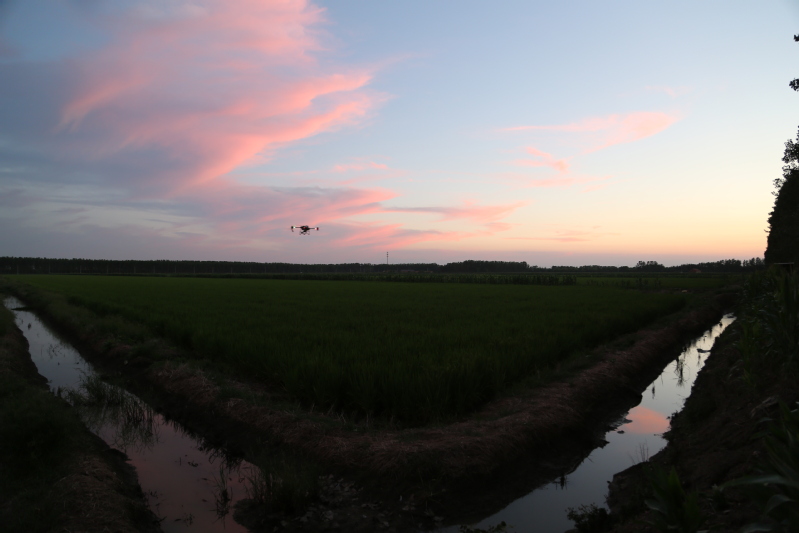 眼下正是水稻產(chǎn)量形成的關(guān)鍵時(shí)期,也是病蟲害高發(fā)時(shí)期。連日來,崗埠分公司組織農(nóng)業(yè)科、生產(chǎn)區(qū)農(nóng)技人員和大隊(duì)管理員,著眼紋枯病、稻曲病、稻縱卷葉螟、稻飛虱等高發(fā)病蟲害,深入田間展開排查統(tǒng)計(jì),分類施策,科學(xué)開展肥水管理和綠色防控,抓好4.5萬畝水稻的穗期管理工作?!盁o人機(jī)夜間對水稻進(jìn)行病蟲害綜合防治作業(yè),避開白天高溫作業(yè)風(fēng)險(xiǎn),大大提升作業(yè)效率,一臺無人機(jī)每小時(shí)可噴灑150畝,有力加速防治進(jìn)程?!睄彶悍止巨r(nóng)業(yè)中心負(fù)責(zé)人表示,無人機(jī)飛防不僅作業(yè)效率快,防治效果好,減少農(nóng)藥使用量,降低農(nóng)業(yè)生產(chǎn)成本,且能大大降低勞動(dòng)強(qiáng)度,一舉多得。當(dāng)前正是穗期水稻病蟲害綜合防治關(guān)鍵節(jié)點(diǎn),分公司共組織無人機(jī)40余臺,采取夜間操作,確保在規(guī)定防治時(shí)間內(nèi)完成防治任務(wù),為秋糧豐收打好基礎(chǔ)。