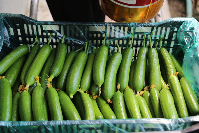 生產(chǎn)中,技術(shù)人員根據(jù)棚溫、濕度等變化規(guī)律合理進(jìn)行調(diào)節(jié),為黃瓜生長(zhǎng)提供適宜的環(huán)境,提高黃瓜的品質(zhì),經(jīng)過科學(xué)管理,目前已經(jīng)成功上市銷售。由于目前市場(chǎng)上水果黃瓜供應(yīng)較少,加之崗埠水果黃瓜品質(zhì)優(yōu)良,收到了保真超市和市區(qū)一些水果連鎖店的熱捧,訂單紛至沓來。“現(xiàn)在水果黃瓜剛上市,產(chǎn)量每天僅4、5百斤,根本不夠搶的,今天都摘了第二遍了?!贝奘科揭贿吤β抵?,一邊說。