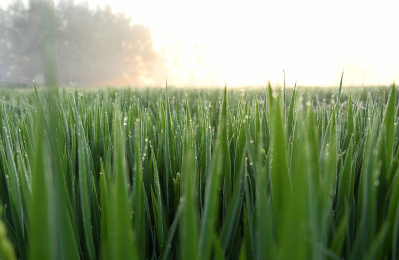 陽光下,霧氣散,空氣中彌漫著清新的稻花香。俯瞰蔥綠的稻田,如一條條綠絲帶整齊排列。晶瑩的晨露凝結(jié)在青翠的秧苗上,猶如給稻田蒙上了一層剔透的面紗。剛抽出的稻穗上,有白色的稻花點(diǎn)點(diǎn),隨著稻穗一起隨風(fēng)輕舞飛揚(yáng)。小蜘蛛也趕來湊個(gè)熱鬧,在枝葉上織起了“秋的毛衣”。