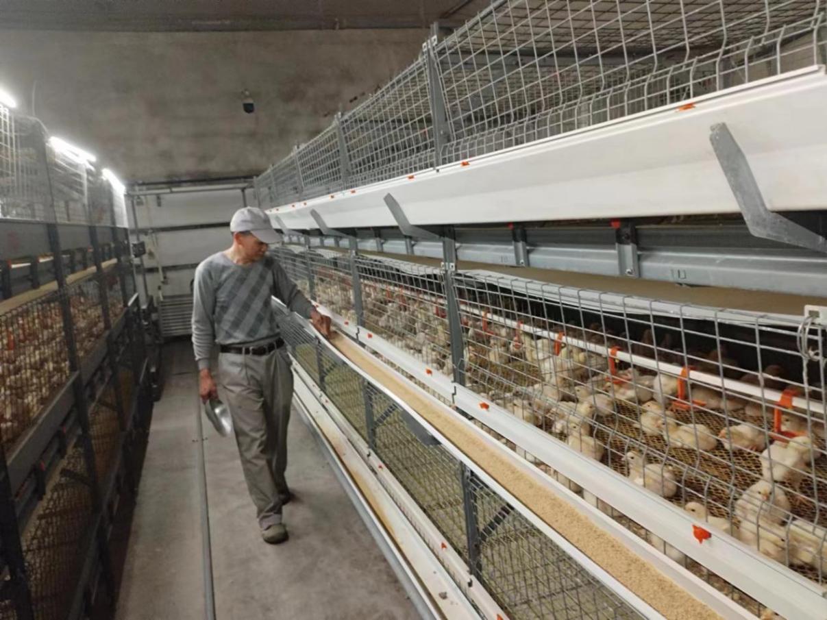 除夕夜,在新曹曙光分場的東北角,森泰第一肉雞養(yǎng)殖小區(qū)的干部職工們正忙著打掃衛(wèi)生?!半m然不能回家與家人團聚,但雞場也是我們的‘家’。我們要將雞場的每一個角落都打掃干凈,為肉雞養(yǎng)殖營造良好環(huán)境?!?0后場長姜康說?!皳渫ā币宦?,雞舍的關門聲傳來,原來是養(yǎng)殖員孫德華又進雞舍了。雞舍內(nèi)的溫度接近三十度,只見老孫將棉襖掛在雞籠旁的架子上,拿著刷子勻料。老孫擦了擦腦門上的汗說:“刷料就好比耕田,及時將料槽底部的料翻上來讓雞吃掉,就不會產(chǎn)生霉變飼料?!?/p>
