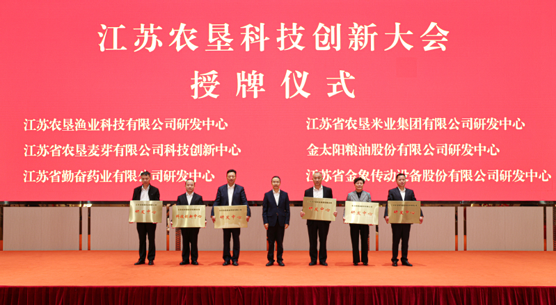 會(huì)上,吳本輝、姜建友共同為江蘇農(nóng)墾漁業(yè)科技有限公司和江蘇省農(nóng)墾產(chǎn)業(yè)技術(shù)研究院有限責(zé)任公司揭牌,吳本輝為蘇墾漁業(yè)研發(fā)中心、蘇墾米業(yè)研發(fā)中心、蘇墾麥芽科技創(chuàng)新中心、金太陽糧油研發(fā)中心、勤奮藥業(yè)研發(fā)中心、金象傳動(dòng)研發(fā)中心授牌,姜建友發(fā)布江蘇農(nóng)墾2024-2025年揭榜掛帥項(xiàng)目榜單,生物育種鐘山實(shí)驗(yàn)室、省農(nóng)科院、南京農(nóng)業(yè)大學(xué)、江南大學(xué)、揚(yáng)州大學(xué)分別與集團(tuán)公司所屬企業(yè)簽署重點(diǎn)項(xiàng)目合作協(xié)議。
