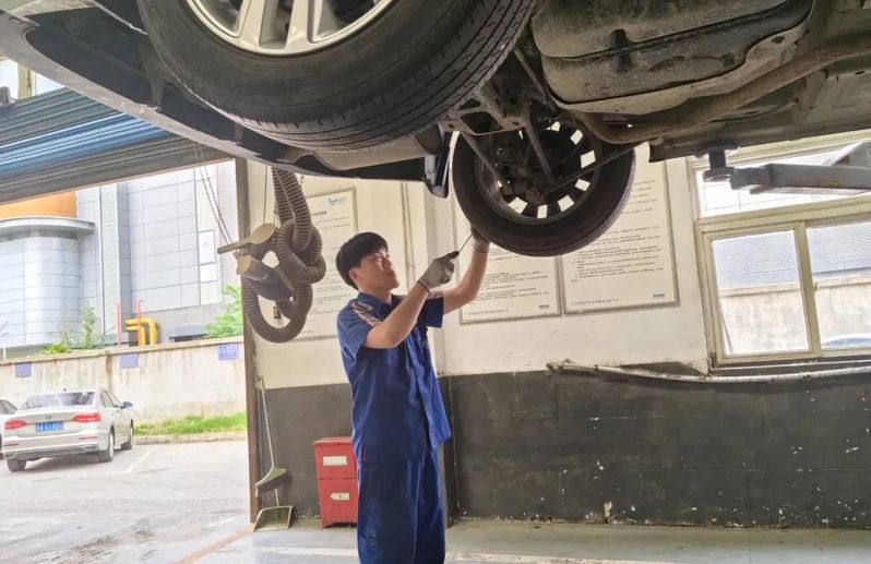 蘇舜汽車公司(上汽大眾4S店)機電技師周亞威正在為保養(yǎng)車進行全車檢查,他認(rèn)真清理著輪胎上的石子,為客戶消除車輛行駛中打滑、漏氣、爆胎等隱患,保障車輛行駛安全。