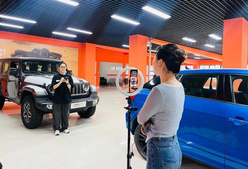 “牧馬人原廠配備全地形255 75/R18輪胎、中控觸摸屏由8寸升級到12寸、涉水深度達(dá)760mm?!碧K舜錦尚公司(Jeep4S店)主播陳佳琪正通過直播間為客戶360°全方位展示和講解車輛配置,她耐心地解答客戶問題,1名客戶已成功預(yù)約進店。