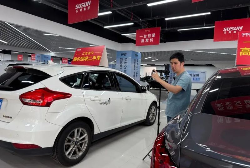 蘇舜省交公司(高端二手車銷售)主播解躍文正在通過鏡頭向客戶全方位展示各款車型,詳細(xì)介紹車輛的外觀、內(nèi)飾、參數(shù)、配置等信息,讓客戶切實感受到“云”購車的貼心、誠心和安心。