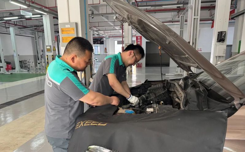 蘇舜舜江公司(上汽榮威、奇瑞星途4S店)技術(shù)經(jīng)理潘學(xué)銀正在指導(dǎo)機電技師黃楠正在維修一輛因發(fā)動機故障導(dǎo)致無法正常行駛的車輛,黃楠說:“修車真的是一項需要經(jīng)驗和技術(shù)的工作,每一次操作都是一次挑戰(zhàn)。”