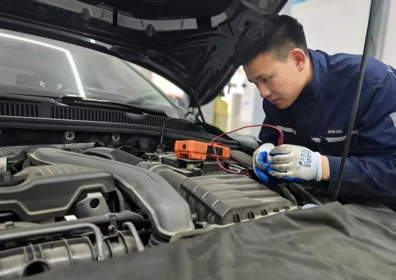蘇舜恒通公司(一汽大眾4S店)機電技師張凱正在排查一輛邁騰車的發(fā)動機故障。他說:“今天修好了一輛故障復(fù)雜的車,感覺自己的耐心和技術(shù)都得到了鍛煉和提升。”