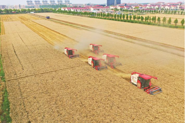 24日,隨著5臺(tái)收割機(jī)在田間來回穿梭,江心沙農(nóng)場(chǎng)本部小麥正式開鐮收割,吹響“本部+外拓+全托管”3萬余畝夏糧收割會(huì)戰(zhàn)集結(jié)號(hào)。全力以赴趕進(jìn)度,在確保顆粒歸倉的同時(shí),為水稻移栽、夏玉米播種等騰出空間、搶出時(shí)間,實(shí)現(xiàn)高效騰茬和收、種、管無縫銜接。