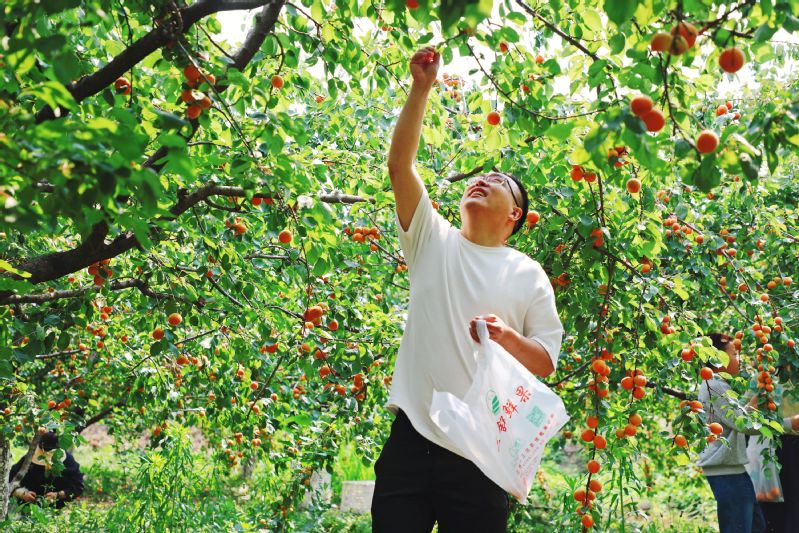 又是一年杏子黃,碩果壓枝正飄香。眼下,江蘇淮安盱眙三河農(nóng)場的杏林迎來豐收,果香四溢的杏子掛滿枝頭,果農(nóng)搶抓晴好天氣進行采摘、分揀、裝箱,一派忙碌的豐收景象。 作者:錢厚紅 韓磊