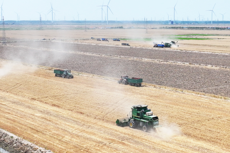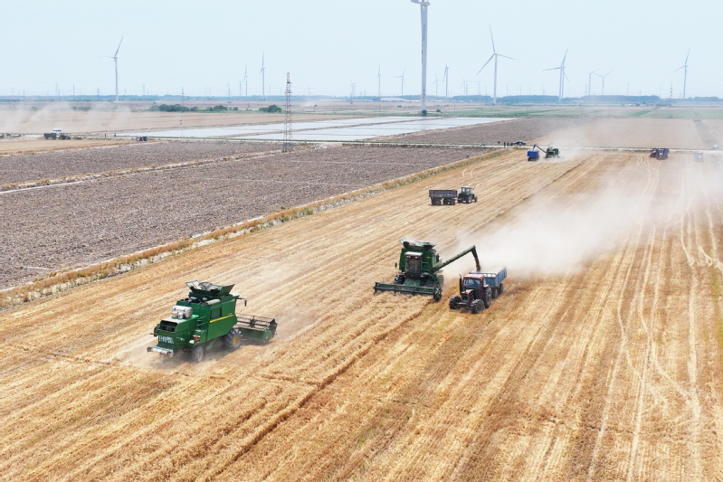 2025年5月29日,鹽城射陽縣江蘇農(nóng)墾臨海農(nóng)場順泰生產(chǎn)區(qū)麥浪涌動,大型聯(lián)合收割機轟鳴作業(yè),率先拉開當(dāng)?shù)叵氖招←溞蚰弧=陙?,農(nóng)場黨委以墾地合作推動發(fā)展,通過技術(shù)賦能與鹽堿地改良,昔日鹽堿地蛻變?yōu)椤皣嵓Z田”,為鄉(xiāng)村振興打造國有農(nóng)業(yè)新樣板。