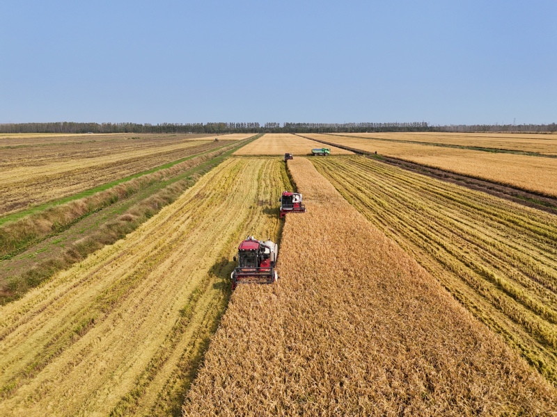 10月28日,江蘇省連云港市海州區(qū)的江蘇農(nóng)墾崗埠農(nóng)場,7臺收割機在農(nóng)田里進行雜交水稻收割作業(yè)。連日來,崗埠農(nóng)場5萬畝優(yōu)質(zhì)水稻陸續(xù)進入成熟收獲期,當?shù)負屪デ绾糜欣鞖猓e極組織農(nóng)機、人員進行水稻收獲、晾曬及烘干工作,確保優(yōu)質(zhì)水稻顆粒歸倉。