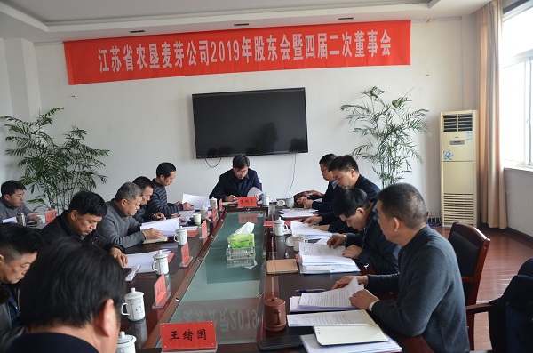 2月20日下午,蘇墾麥芽公司2019年股東會暨四屆二次董事會在公司會議室召開,集團公司副總經(jīng)理姜建友出席會議,全體股東代表、董事參加了會議,公司監(jiān)事及經(jīng)營層成員列