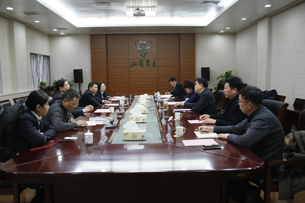 1月9日下午,中國人民財產(chǎn)保險股份有限公司江蘇省分公司黨委書記、總經(jīng)理夏玉揚一行到集團公司溝通交流合作事宜。集團公司黨委書記、董事長魏紅軍接待并座談。省糧食和物資儲備局副局長季俊秋、集團公司黨委委員、