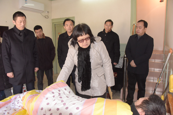 2月6日上午,集團公司黨委副書記姚準明一行來到新曹農(nóng)場走訪慰問困難職工,為他們送去集團黨委的真情關(guān)愛。場領(lǐng)導陳國強、高國平、徐坤山等陪同慰問?! ∫拭魇紫葋淼揭虿≈吕毠は臐摄y家中,