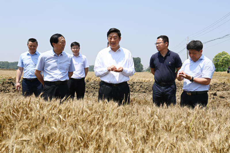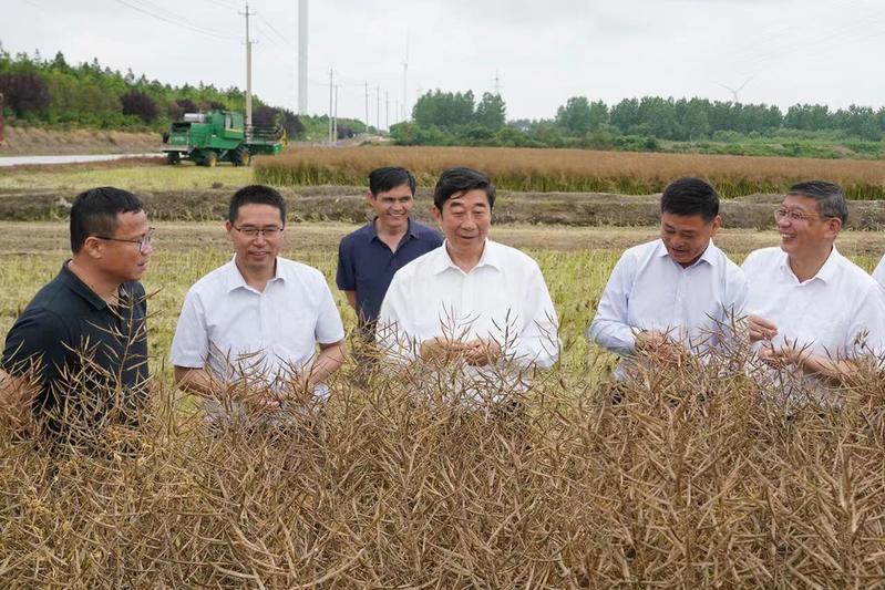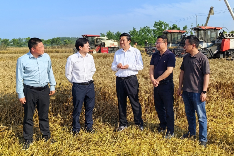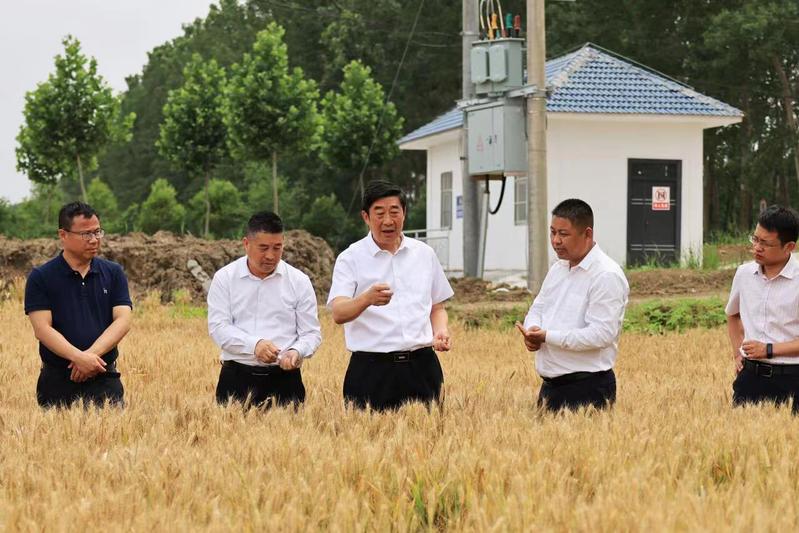 6月1日下午,集團(tuán)公司黨委副書記、總經(jīng)理胡兆輝到新曹調(diào)研指導(dǎo)“三夏”工作和農(nóng)場(chǎng)公司產(chǎn)業(yè)發(fā)展。胡兆輝先后察看了蘇墾農(nóng)發(fā)新曹分公司油菜收割現(xiàn)場(chǎng)、小麥?zhǔn)崭瞵F(xiàn)場(chǎng)、水稻秧池、耕整打作現(xiàn)場(chǎng)、糧食烘干線和晾曬場(chǎng)、高標(biāo)準(zhǔn)農(nóng)田建設(shè)項(xiàng)目區(qū),以及農(nóng)場(chǎng)公司原絲綢廠廠房、日本矮麥冬套種基地,認(rèn)真聽取有關(guān)人員的情況介紹,與一線工作人員親切交談,詳細(xì)了解蘇墾農(nóng)發(fā)新曹分公司“三夏”工作進(jìn)展和農(nóng)場(chǎng)公司產(chǎn)業(yè)發(fā)展情況,對(duì)新曹“同舉一面旗、共下一盤棋、全力戰(zhàn)三夏”的做法表示肯定,對(duì)新曹前段時(shí)間大力支持“淮海啤麥會(huì)戰(zhàn)”給予贊揚(yáng),對(duì)新曹一班人團(tuán)結(jié)奮斗、激情創(chuàng)業(yè)的氛圍表示贊賞。他指出,今年“三夏”生產(chǎn)形勢(shì)十分嚴(yán)峻,新曹作為墾區(qū)大場(chǎng)之一,要牢記“國之大者”,強(qiáng)化責(zé)任擔(dān)當(dāng),全力做好“三夏”各項(xiàng)工作,為墾區(qū)“三夏”全勝作出更大貢獻(xiàn)。他要求,要強(qiáng)化防災(zāi)抗災(zāi)減災(zāi)意識(shí),圍繞“五不”和“五確?!蹦繕?biāo),立足于搶,著眼于快,抓住當(dāng)前晴好天氣,保種子、保原糧、保栽插進(jìn)度,把豐收在望變成豐收到手,一著不讓同步打牢秋超增收基礎(chǔ);要樹牢墾區(qū)一盤棋思想,針對(duì)可能出現(xiàn)的惡劣天氣,提前做好“南機(jī)北援”準(zhǔn)備工作,全力支援兄弟單位“三夏”搶收搶種。他強(qiáng)調(diào),開展主題教