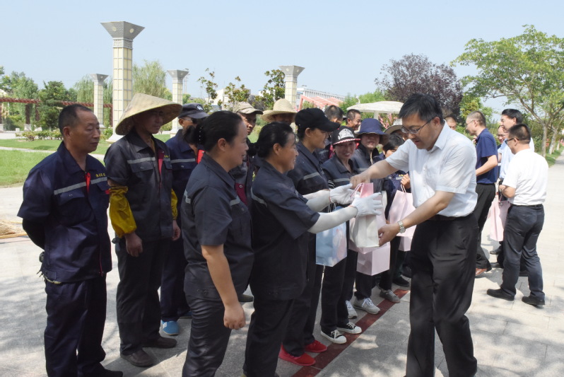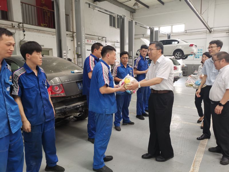 烈日炎炎,熱浪滾滾。8月12日下午,集團工會主席楊義林一行到蘇舜公司上汽大眾4S店(江蘇蘇舜汽車)開展高溫慰問。 楊義林來到蘇汽公司售后維修車間,看望慰問高溫下作業(yè)的一線職工,親手將防暑降溫慰問用品送到了職工們手上。楊義林對不畏酷暑、堅守崗位的一線職工表示衷心的感謝,并叮囑他們在高溫天氣下勞作要勞逸結(jié)合、保重身體,既要完成工作,也要確保身心健康,時刻注意安全勞作。 隨后,楊義林詳細了解了職工的工作生活情況,并跟大家做了親切的交談。楊義林指出,要堅持“以人為本”的理念,將關(guān)愛職工作為凝聚團隊力量、促進企業(yè)發(fā)展的有效途徑和聚人心、暖人心、穩(wěn)人心的切實體現(xiàn),要心系職工,尤其要做好對困難職工的慰問幫扶。對蘇舜公司正在研究制定出臺的《蘇舜集團職工大病互助基金管理辦法》工作,楊義林強調(diào),職工大病互助基金是一項暖人心的工程,一定要把事情做好、做實,規(guī)范管理,提高效率,充分發(fā)揮好互助基金的作用,要用心用情用力為職工群眾辦實事、做好事、解難事。 集團領(lǐng)導(dǎo)的關(guān)心慰問,讓職工們倍感溫馨和鼓舞。高溫仍將延續(xù),但職工們紛紛表示將繼續(xù)立足本職、堅守崗位、不忘初心,一絲不茍地干好工作,盡心盡力為客戶提供滿意的服務(wù),