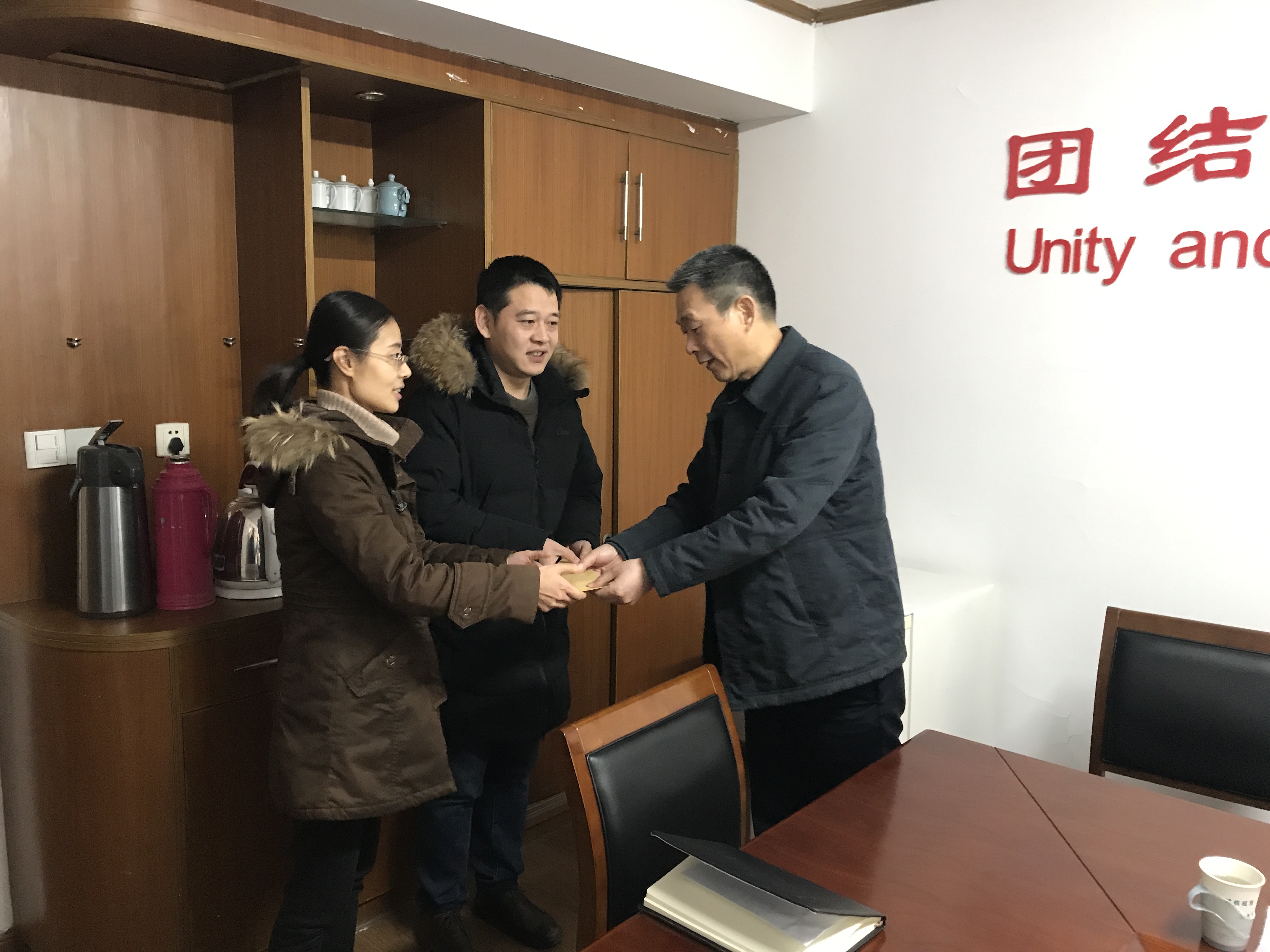 胡兆輝到南通慰問困難職工  歲寒情意濃,慰問暖人心。1月15日,在新春佳節(jié)即將到來之際,集團公司黨委副書記、總經(jīng)理胡兆輝,黨委委員、副總經(jīng)理仲小兵一行來到蘇墾南通公司,親切慰問困難職工,為他們送上