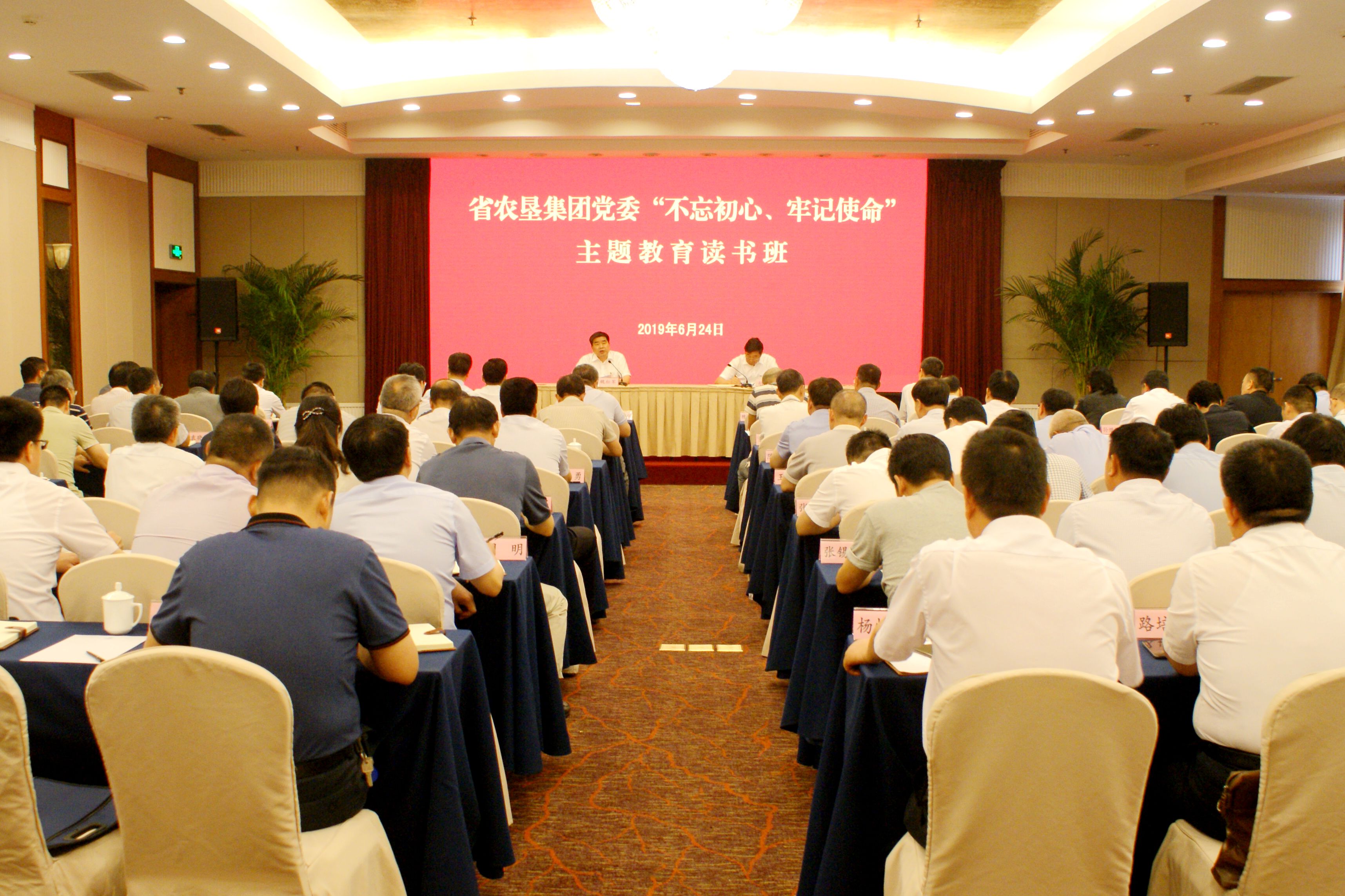 6月24日,集團(tuán)黨委“不忘初心、牢記使命”主題教育讀書班在寧開班。集團(tuán)公司黨委書記、董事長魏紅軍作開班動員講話;黨委副書記、總經(jīng)理胡兆輝,黨委副書記姚準(zhǔn)明依次主持。省紀(jì)委駐