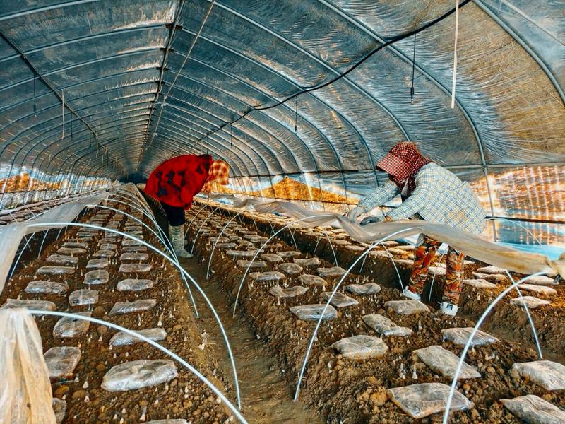 走進(jìn)淮海農(nóng)場(chǎng)產(chǎn)業(yè)發(fā)展中心羊肚菌種植基地,在率先進(jìn)行播種的11個(gè)羊肚菌大棚內(nèi),一簇簇褐蓋白桿、狀似羊肚的羊肚菌錯(cuò)落有致地分布在畦面上,長(zhǎng)勢(shì)十分喜人,預(yù)計(jì)幾天后便可進(jìn)行集中采收,產(chǎn)量能達(dá)到800斤以上。種植初期,由于羊肚菌品種單一、種植技術(shù)落后,淮海的菌菇產(chǎn)業(yè)一直難以做大做強(qiáng)做優(yōu)。為此,淮海農(nóng)場(chǎng)產(chǎn)業(yè)發(fā)展中心堅(jiān)持“走出去、引進(jìn)來”,多次與省農(nóng)科院等大院大所合作,選擇最適合淮海種植的羊肚菌菌種,同時(shí)赴揚(yáng)州、徐州、山東等處開展實(shí)地考察和交流,掌握羊肚菌種植技術(shù)的重點(diǎn)、要點(diǎn),在實(shí)際探索過程中逐步解決種植難點(diǎn)、痛點(diǎn),最終確定引進(jìn)產(chǎn)量高、品質(zhì)優(yōu)、口感好、深受市場(chǎng)歡迎的“六妹”“七妹”兩個(gè)品種并成功種植。為確保羊肚菌的品質(zhì)和質(zhì)量,產(chǎn)業(yè)發(fā)展中心羊肚菌種植技術(shù)員嚴(yán)格控制好大棚內(nèi)的溫度、濕度和光照等環(huán)境因素,為羊肚菌提供一個(gè)最佳的生長(zhǎng)環(huán)境。面對(duì)初春溫差反復(fù)的實(shí)際,技術(shù)人員還創(chuàng)新性地使用揭蓋黑白膜的方式,保障大棚內(nèi)的羊肚菌健康發(fā)育。同時(shí),定期進(jìn)行大棚巡查和病蟲害防治,確保羊肚菌在生長(zhǎng)過程中不受侵害。農(nóng)場(chǎng)公司也多次組織機(jī)關(guān)、社區(qū)管理人員開展志愿服務(wù),全力為羊肚菌產(chǎn)業(yè)發(fā)展保駕護(hù)航。經(jīng)過兩年的探索種植,2024年,產(chǎn)