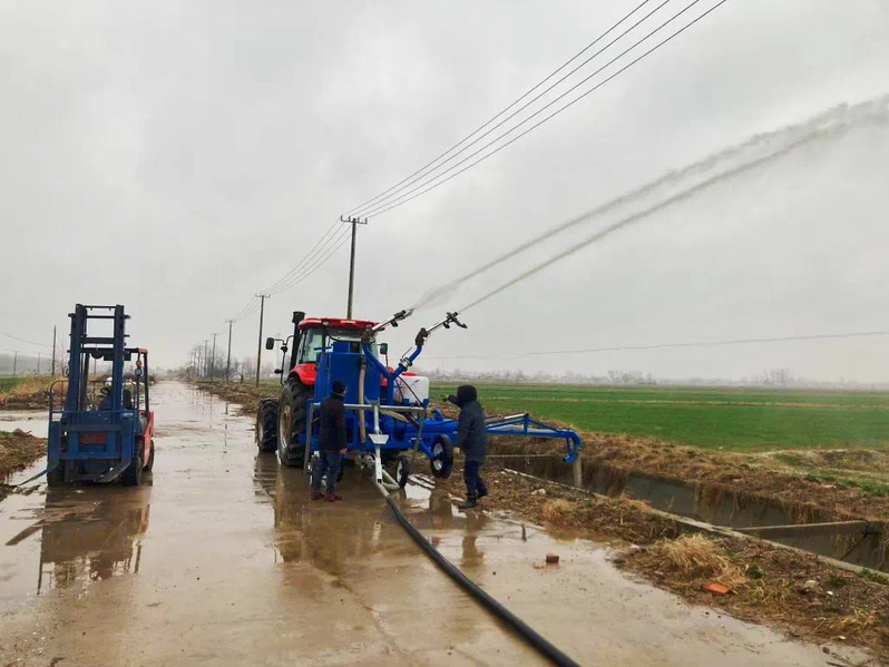 “我們?cè)诔晒ρ兄茋姽鄼C(jī)的基礎(chǔ)上,如今又完成了沼液噴灌機(jī)的調(diào)試運(yùn)營(yíng)?!苯?,在蘇墾農(nóng)發(fā)淮海分公司第五生產(chǎn)區(qū)37大隊(duì)地頭,參與農(nóng)機(jī)試驗(yàn)的陳華開心地說,“新改造的沼液噴灌機(jī)試驗(yàn)成功,讓我們農(nóng)機(jī)服務(wù)又多了一個(gè)新項(xiàng)目?!比ツ暌詠恚春^r(nóng)機(jī)總站優(yōu)化農(nóng)機(jī)裝備結(jié)構(gòu),根據(jù)農(nóng)業(yè)生產(chǎn)和市場(chǎng)需求,不斷加大農(nóng)機(jī)具科技創(chuàng)新力度,實(shí)現(xiàn)場(chǎng)域農(nóng)業(yè)機(jī)械化高效發(fā)展?! 罢右鹤鳛橐环N有機(jī)肥料,對(duì)于提高土壤肥力、促進(jìn)作物生長(zhǎng)、加速‘藥肥雙減’具有重要作用?!?7大隊(duì)大隊(duì)長(zhǎng)黃建平看著嶄新的沼液噴灌機(jī)說,“沼液噴灌機(jī)是將沼液均勻噴灑到農(nóng)田中的關(guān)鍵設(shè)備?!闭右簢姙⒃O(shè)備是將總站制作的噴灌機(jī)與原有的卷?yè)P(yáng)噴灌機(jī)有機(jī)結(jié)合進(jìn)行升級(jí)改造而成,在機(jī)具設(shè)備上增加了沼液儲(chǔ)存箱,通過用水和沼液的有效稀釋,達(dá)到預(yù)期噴灌效果。為了保障此次試驗(yàn)成功,農(nóng)機(jī)總站工作人員前期進(jìn)行了充分的準(zhǔn)備工作,從圖紙?jiān)O(shè)計(jì)到生產(chǎn)加工,總站農(nóng)機(jī)創(chuàng)新小組成員鉚足干勁,終于研制出試驗(yàn)樣品,通過加注沼液實(shí)地試驗(yàn),一舉獲得成功?! 靶滦驼右簢姽鄼C(jī)的沼液雙向射程能達(dá)到100米左右,行走一趟可同時(shí)滿足兩個(gè)自然條田噴灌作業(yè)?!痹诂F(xiàn)場(chǎng)主持試驗(yàn)的農(nóng)機(jī)總站站長(zhǎng)張榮成介紹道,“農(nóng)場(chǎng)有大型養(yǎng)豬場(chǎng),