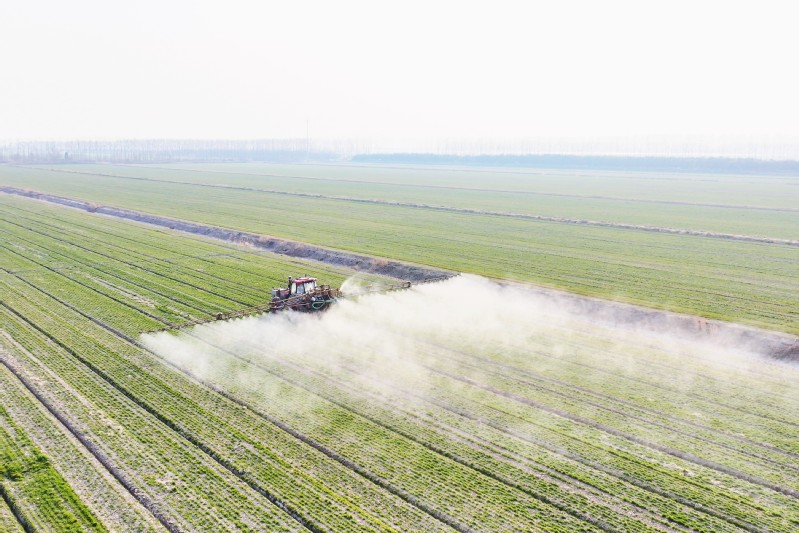 春季是雜草生長(zhǎng)的高峰期,同時(shí)也是小麥?zhǔn)┓实年P(guān)鍵節(jié)點(diǎn)。及時(shí)開(kāi)展化學(xué)除草并合理施肥,能夠有效抑制雜草危害,為小麥生長(zhǎng)補(bǔ)充所需養(yǎng)分,促使麥苗茁壯成長(zhǎng)。連日來(lái),在三河的 4.2 萬(wàn)畝麥田里,無(wú)人機(jī)、植保機(jī)在田間往來(lái)穿梭,開(kāi)展化除作業(yè)。各生產(chǎn)區(qū)依據(jù)前期對(duì)草情苗情的普查結(jié)果,科學(xué)挑選除草劑,并嚴(yán)格按照配比和操作規(guī)程進(jìn)行噴施,在確保除草效果的同時(shí),防止對(duì)小麥造成藥害。與此同時(shí),針對(duì)不同地塊的肥力狀況以及小麥生長(zhǎng)態(tài)勢(shì),制定了精準(zhǔn)的施肥方案,以提升肥料利用率。2月27日上午,在潘莊生產(chǎn)區(qū)王佳鈺規(guī)模體田間,生產(chǎn)區(qū)副主任朱廣耀、農(nóng)業(yè)技術(shù)員孫文崢一邊在田間查看雜草發(fā)生情況,一邊根據(jù)苗情苗勢(shì)制定化除和施肥方案。田的另一側(cè),無(wú)人機(jī)空中作業(yè)與地面植保機(jī)作業(yè)的轟鳴聲交織在一起,一幅春管生產(chǎn)繁忙的畫(huà)卷呈現(xiàn)在眼前。“由于前段時(shí)間長(zhǎng)時(shí)間干旱無(wú)雨,給在田小麥管理帶來(lái)了一定影響,這次降雨對(duì)小麥生產(chǎn)極為關(guān)鍵,我們務(wù)必抓住這次降雨的有利時(shí)機(jī),完成麥田春季化除和肥料撒施工作,化除工作今天基本結(jié)束,就等著下雨撒肥了。” 潘莊生產(chǎn)區(qū)副主任朱廣耀說(shuō)道。為切實(shí)做好春季麥田化除和施肥工作,該場(chǎng)農(nóng)業(yè)中心還組織了農(nóng)業(yè)技術(shù)服務(wù)隊(duì)伍,深入田間地頭進(jìn)行