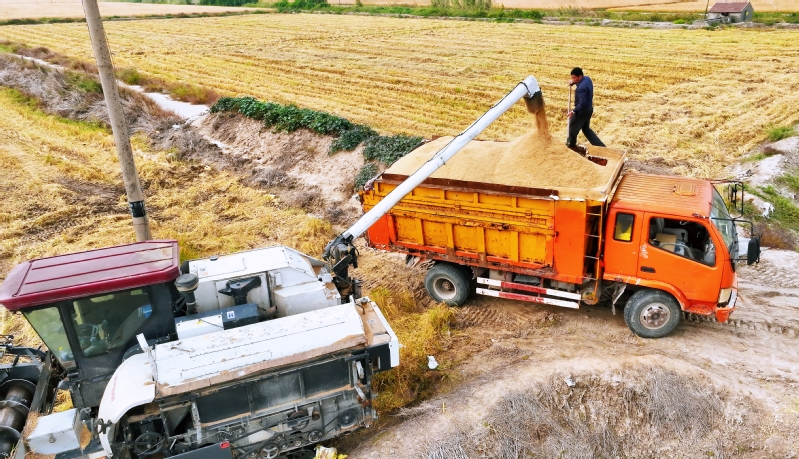 時(shí)下,正式秋收好時(shí)節(jié),在蘇墾農(nóng)發(fā)云臺(tái)分公司廣袤的田野上,豆莢搖曳如鈴,玉米金黃飽滿,伴隨著收割機(jī)的轟鳴聲,蘇墾農(nóng)發(fā)云臺(tái)分公司1.1萬畝玉米大豆復(fù)合種植“喜開鐮”,工作人員搶抓晴好天氣,及時(shí)收割、晾曬,開始了緊張而有序的收割工作。蘇墾農(nóng)發(fā)云臺(tái)分公司緊盯全年糧食生產(chǎn)目標(biāo)任務(wù),按照江蘇省農(nóng)墾集團(tuán)的“五統(tǒng)一”模式為標(biāo)準(zhǔn),通過“4+4”復(fù)合種植模式,充分發(fā)揮高位作物玉米的邊行優(yōu)勢(shì),擴(kuò)大低位作物大豆受光空間,實(shí)現(xiàn)作物協(xié)同共生、一季雙收。為了抓好今年“三秋”工作,蘇墾農(nóng)發(fā)云臺(tái)分公司制定了各大隊(duì)組織分工、產(chǎn)量目標(biāo)、成本管控、生產(chǎn)進(jìn)度、作業(yè)質(zhì)量、田間苗情、病蟲草害控制、場(chǎng)頭管理與糧食入庫銷售、質(zhì)控平臺(tái)運(yùn)行、農(nóng)業(yè)面源污染治理、藥肥雙減增效、安全生產(chǎn)等12項(xiàng)“三秋”考核內(nèi)容,并多次開展技術(shù)培訓(xùn),為抓好“三秋”工作提供組織保證、考核目標(biāo)和技術(shù)標(biāo)準(zhǔn)?!翱礃幼?,今年又是一個(gè)豐收年。”一大隊(duì)隊(duì)長王飛抓起一把玉米說。“開始作業(yè)前,我們對(duì)所有農(nóng)機(jī)具進(jìn)行了安全自查,確保收割機(jī)狀態(tài)良好,在玉米收割過程中我們嚴(yán)格按照玉米收獲作業(yè)質(zhì)量管理規(guī)程,真正實(shí)現(xiàn)玉米籽粒損失率要小于等于百分之二,籽粒破損率要小于等于百分之五的目標(biāo)任務(wù)?!?/div>