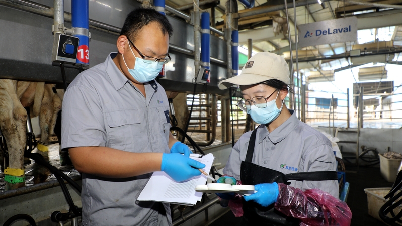 在東旺奶牛公司生態(tài)養(yǎng)殖示范場(chǎng)的現(xiàn)代化牛舍里,一頭頭黑白相間的奶?;蛴崎e踱步,或低頭進(jìn)食,呈現(xiàn)出一派悠然的景象。這背后是牧場(chǎng)“牛人”們用專業(yè)與匠心編織的“育牛網(wǎng)”,他們以千百個(gè)精細(xì)瞬間詮釋著“養(yǎng)好牛才能產(chǎn)好奶”的真理。
