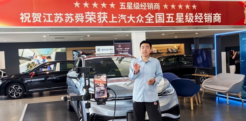 蘇舜公司創(chuàng)新“直播+服務(wù)”銷售模式,重點(diǎn)發(fā)力“抖音、小紅書”等平臺(tái),加大直播場(chǎng)次與粉絲互動(dòng),將留資轉(zhuǎn)化率提升至12%,平均觀看時(shí)長(zhǎng)達(dá)到23分鐘。圖為工作人員在直播間提供二手車在線置換評(píng)估、金融方案計(jì)算等服務(wù)。